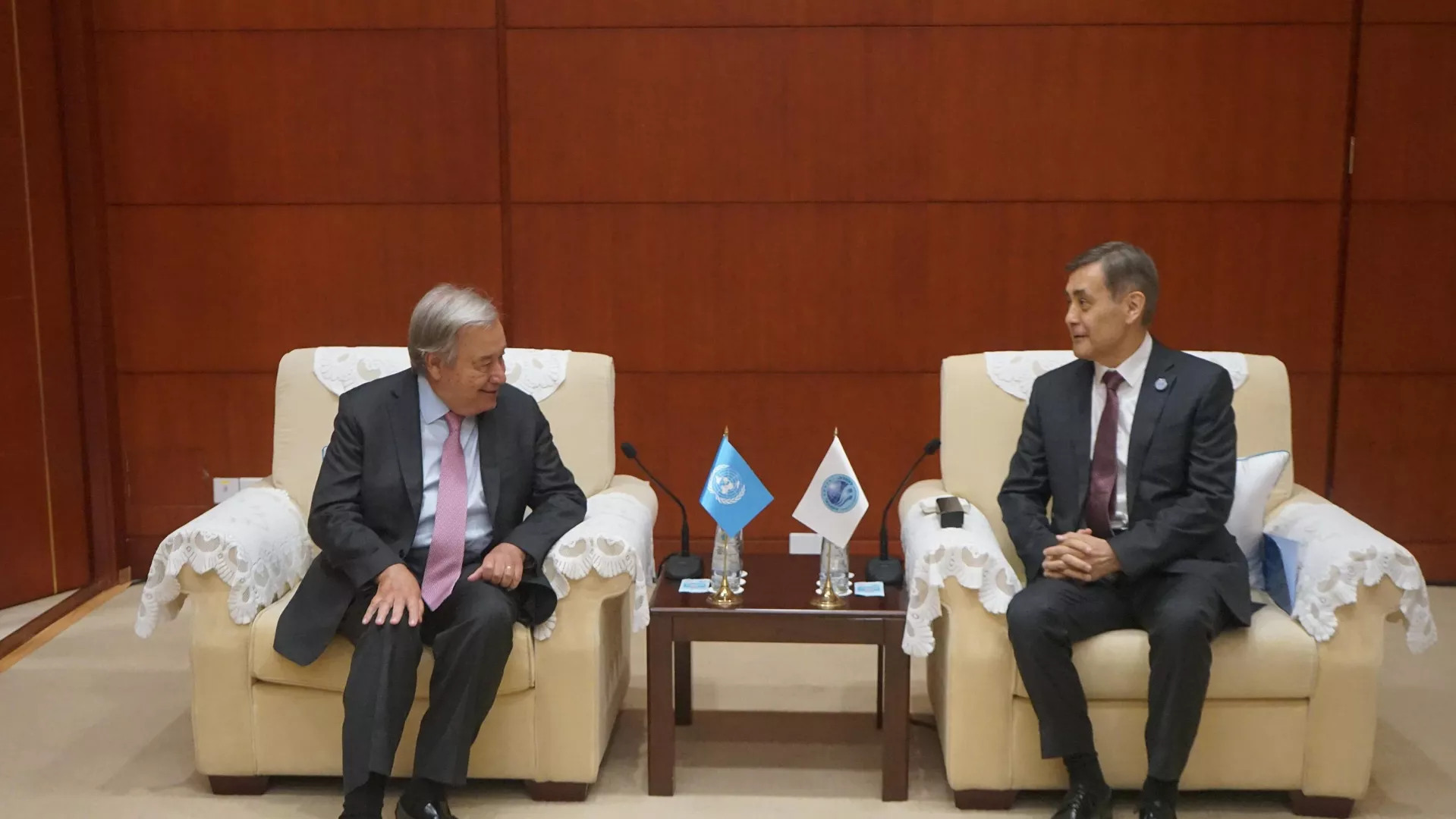 2025年8月31日,上海合作组织秘书长叶尔梅克巴耶夫在出席上合组织天津峰会期间,会见来华出席“上合组织+”会议的联合国秘书长古特雷斯。