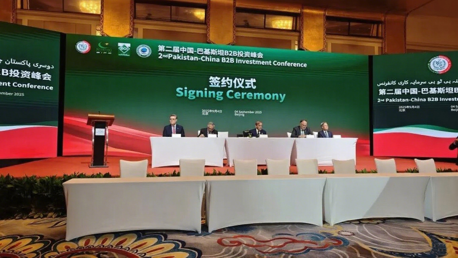 2025年9月4日由巴基斯坦驻华大使馆、巴基斯坦特别投资便利委员会(SIFC)、巴基斯坦投资委员会(BOI)、巴基斯坦贸易发展局(TDAP)联合主办的第二届中国-巴基斯坦B2B投资峰会在北京中国大饭店隆重举行,上合经贸交流中心作为协办单位全程参与。