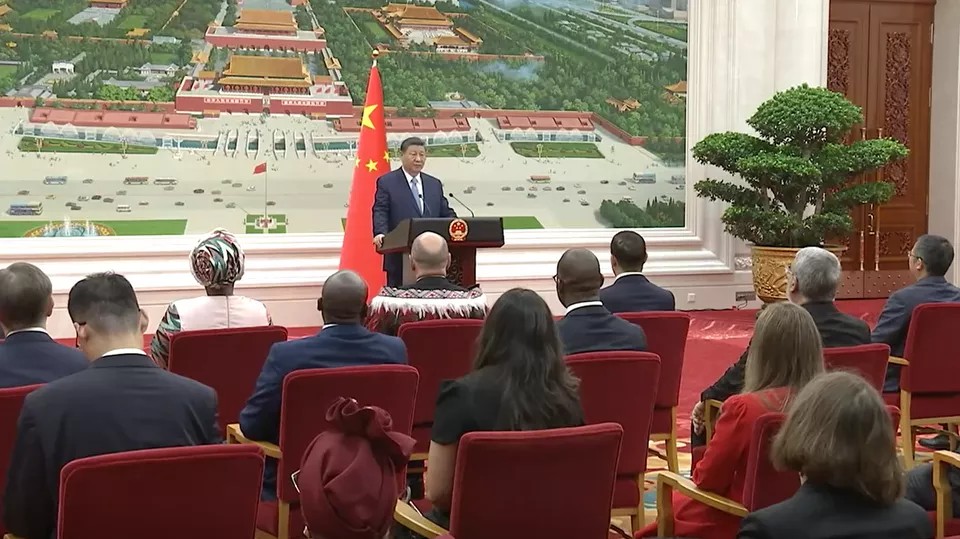 2025年7月25日,上海合作组织秘书长叶尔梅克巴耶夫在北京人民大会堂出席相关国家新任驻华大使递交国书仪式并会见中国国家主席习近平。